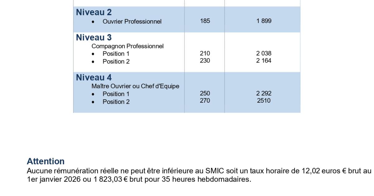 salaires ouvriers 2026 Salaires ouvriers 2026 Juridique/Gestion Publié le 23 avril 2026 Gros plans sur les salaires minimums des ouvriers en 2026.