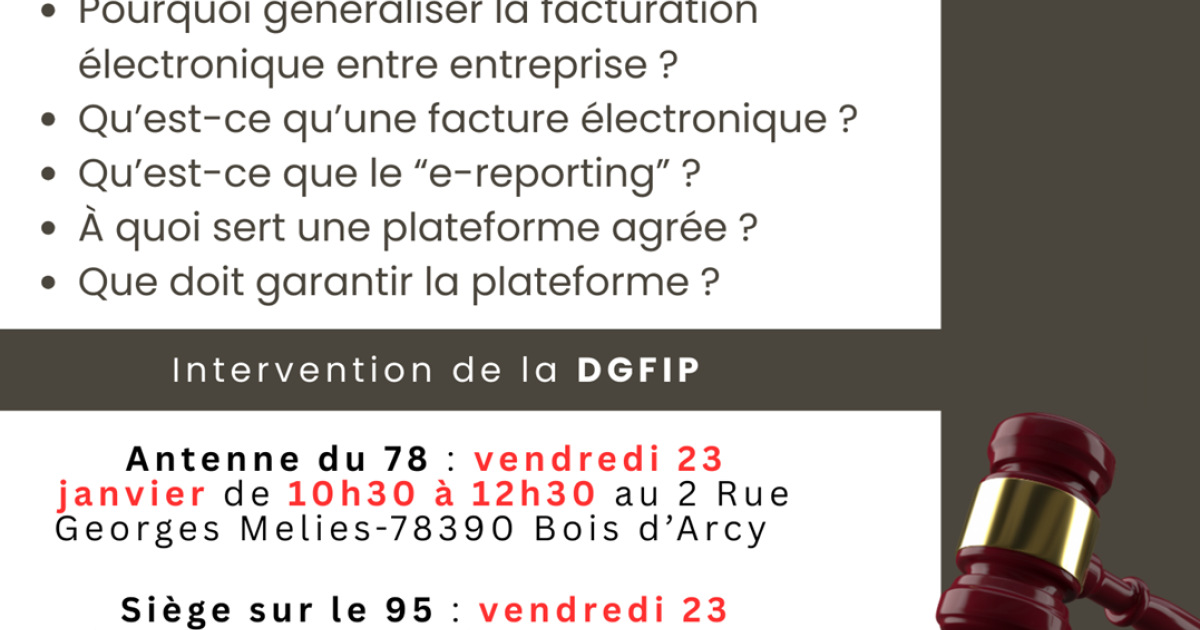 CAFÉ JURIDIQUE La facturation électronique : Pourquoi généraliser la facturation électronique entre entreprise ? Qu’est-ce qu’une facture électronique ? Qu’est-ce que le “e-reporting” ? À quoi sert une plateforme agrée ? Que doit garantir la plateforme ? 23 janvier 2026 Bois d'Arcy